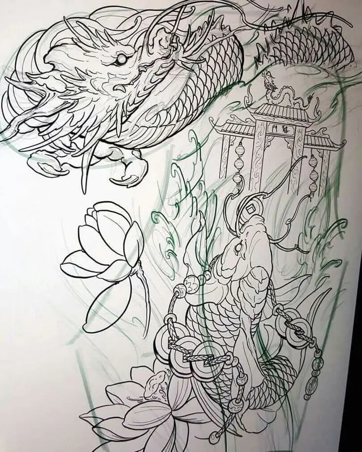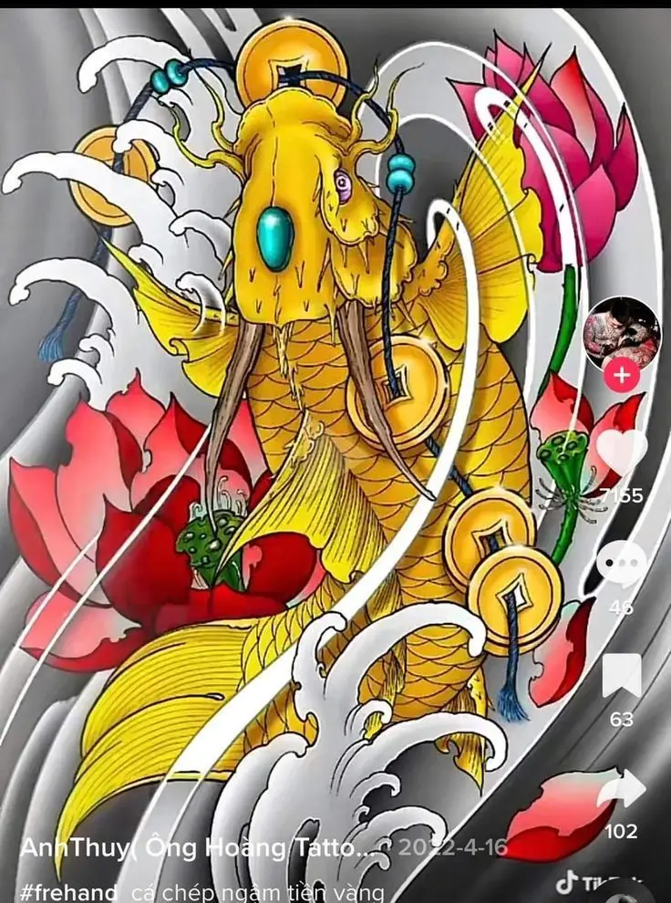 Hình xăm cá chép hóa rồng được truyền cảm hứng từ huyền thoại về sự biến đổi và sức mạnh vượt bậc. Theo văn hóa dân gian, cá chép chính là biểu tượng của sự kiên trì, bền bỉ, khi vượt qua thác Kình sẽ hóa thành rồng. Điều này không chỉ mang lại sức mạnh tinh thần mà còn thể hiện khát vọng vươn tới thành công trong cuộc sống.